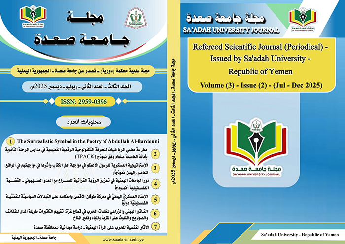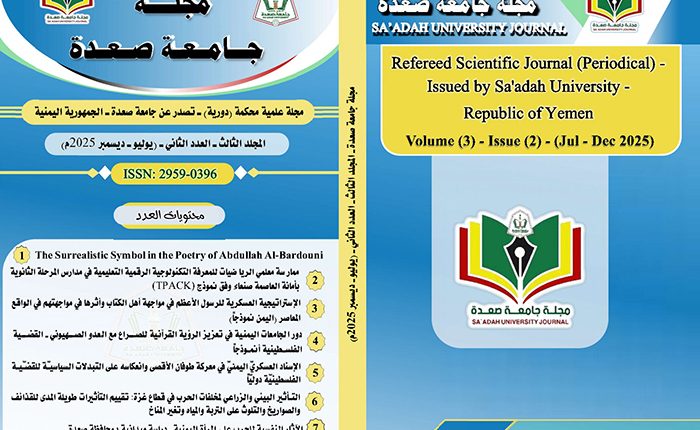 تم بفضل الله وتوفيقه صدور المجلد (3)، العدد (2)، (يوليو- ديسمبر2025م)، من مجلة جامعة صعدة العلمية المحكمة، واشتمل هذا الإصدار على مجموعة من الأبحاث العلمية القيمة، لنخبة مميزة من العلماء والباحثين من داخل اليمن وخارجها.