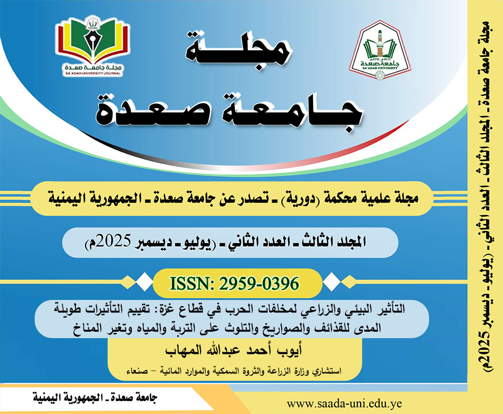 يهدف هذا البحث إلى دراسة التأثيرات البيئية والزراعية طويلة الأجل لمخلفات الحرب في قطاع غزة، من خلال تقييم مدى تلوث التربة والمياه، وتحليل انبعاثات الكربون الناتجة عن العمليات العسكرية، واستكشاف انعكاساتها على تغير المناخ والموارد الطبيعية، بغية الوصول إلى حلول مستدامة للحد من الأضرار البيئية وتعزيز الاستدامة الزراعية. منهجية البحث تمت عبر تحليل صور الأقمار الصناعية وتقارير المنظمات البيئية لتقييم حجم الدمار البيئي والزراعي، إلى جانب بيانات برنامج الأمم المتحدة للبيئة التي كشفت عن مستويات غير مسبوقة من التلوث الناجم عن العمليات العسكرية، وخاصة فيما يتعلق بانبعاثات الكربون وتلوث الموارد الطبيعية. حيث أظهرت النتائج فقدان أكثر من 50% من الأراضي الزراعية، مما فاقم أزمة الأمن الغذائي، إضافة إلى تلوث كبير للتربة والمياه بسبب استخدام الفسفور الأبيض ومواد سامة أخرى. كما بلغت انبعاثات الكربون الناتجة عن القصف الجوي خلال 120 يومًا فقط حوالي 410,536 أطنان من ثاني أكسيد الكربون، متجاوزة الانبعاثات السنوية لعدة دول مجتمعة.