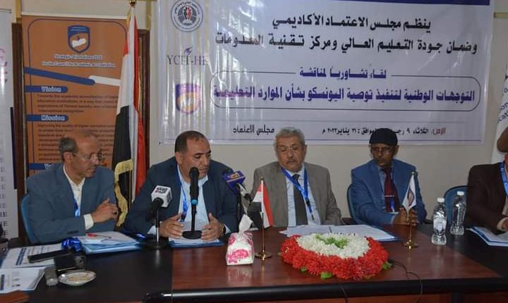 فيما استعرض رئيس مجلس الاعتماد الأكاديمي الدكتور أحمد الهبوب ، وأمين عام المجلس الدكتور محمد ضيف الله، مهام وأهداف توصية اليونيسكو 2019 بشأن الموارد التعليمية المفتوحة، ومتطلبات التنفيذ، وأهدافها ومميزاتها والتوجهات الوطنية لتنفيذ التوصية والحصول على مصادر تعليمية خاصة باليمن وفقاً لتراخيص ملكية فكرية محددة.