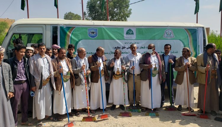 جامعة صعدة تدشن حملة نظافة واسعة وتزيين مباني الجامعة إحتفاء بذكرى المولد النبوي