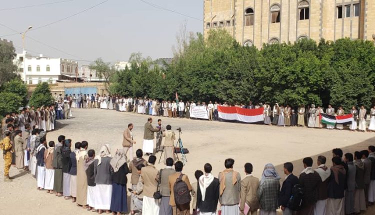 وقفة إحتجاجية بجامعة صعدة مؤيدة لثورة الجامعات الأمريكية والأوربية