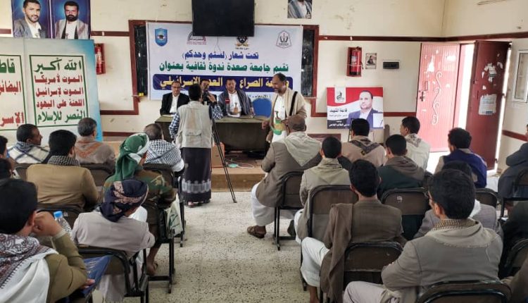 نظمت جامعة صعدة وملتقى الطالب الجامعي صباح اليوم ندوة علمية عن طبيعة الصراع مع العدو الإسرائيلي تحت شعار (لستم وحدكم).