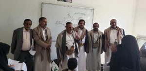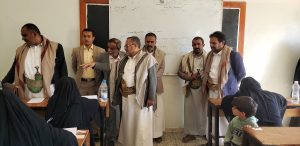 رافقة خلال الزيارة للقاعات الاختبارية ومدير عام الدراسات العليا الأستاذ علي العزي، وأمين عام كلية العلوم التطبيقية الأستاذ جمعان عتيق.