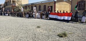 نظمت جامعة صعدة وملتقى الطالب الجامعي، وقفتين تضامنيتين تحت شعار “إلى جانب شعبنا وجيشنا مستمرون بالتصعيد ولأجل غزة مستعدون لأي تهديد”.