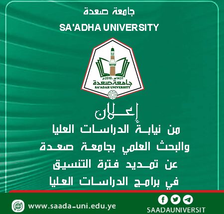 إعـــــــلان عن تمديد فترة التنسيق في برامج الدراسات العليا بجامعة صعدة