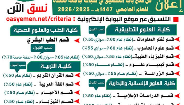 التنسيق مستمر في مختلف كليات جامعة صعدة للعام الجامعي 1447هـ.