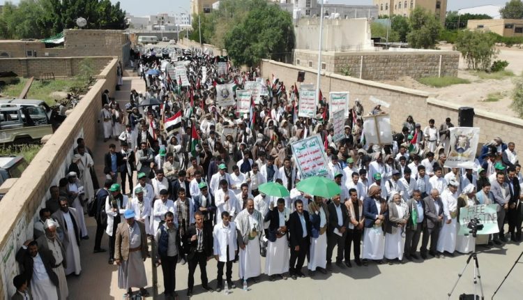 مسيرة لأكاديميي وطلاب جامعة صعدة دعماً لغزة وتنديدًا بجرائم العدو الإسرائيلي