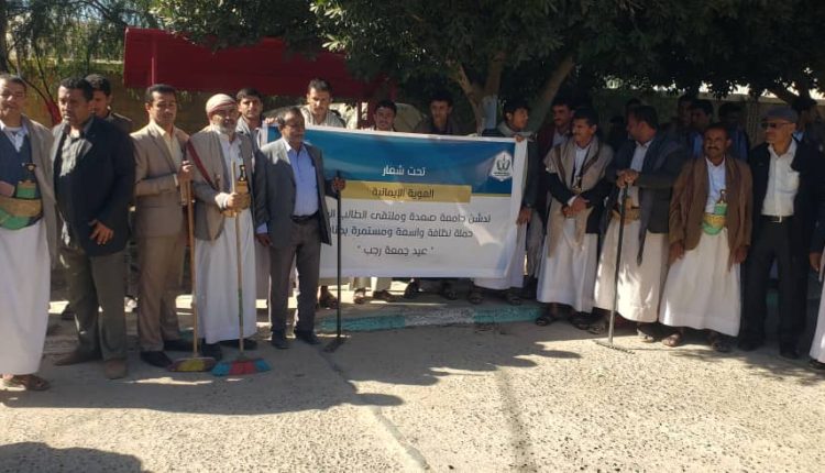 حملة نظافة لرفع القمائم والمخلفات بجامعة صعدة احتفاءًا بذكرى جمعة رجب