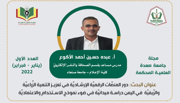 دور المنصات الرقمية الإرشادية في تعزيز التنمية الزراعية والريفية في اليمن دراسة ميدانية في ضوء نموذج الاستخدام والاعتمادية